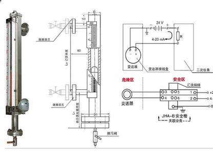 江蘇翔騰儀表有限公司主營的帶遠傳磁翻板液位計可以配遠傳裝置把液位數據通過4-20mA電流信號輸出,然后用屏蔽線纜將磁翻板液位計帶遠傳裝置和控制室里的液位顯示儀表也就是數顯表連接起來,電流信號便傳輸到數顯表上,然后數顯表就會顯示出來信號。*后就是把相應的液位范圍設置成對應的電流信號在4-20mA范圍內。這樣,*后根據設置的對比信號,就可判斷出現場液位。